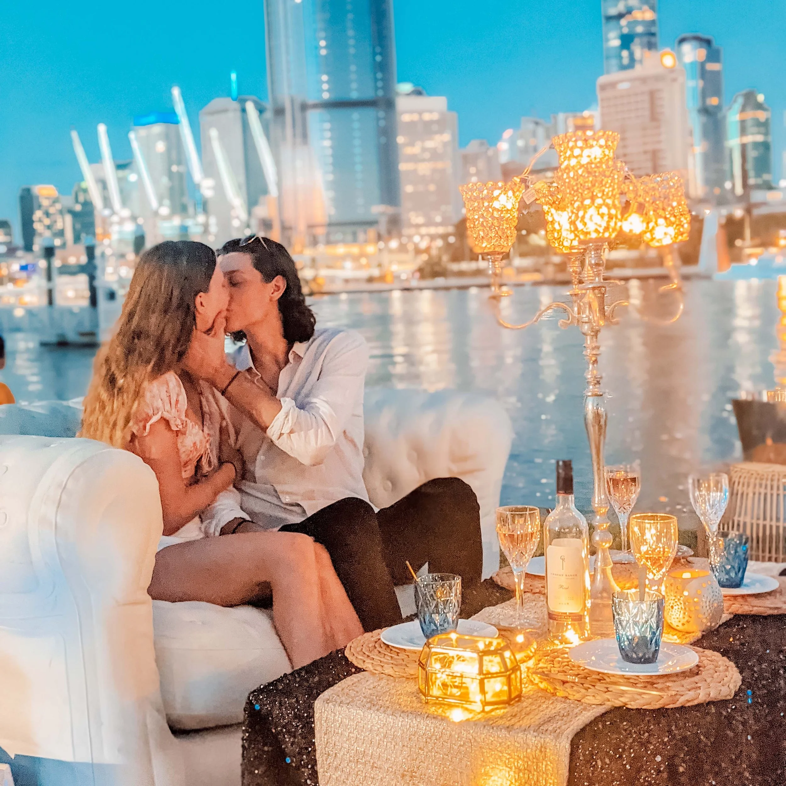 You can book now knowing you have successfully curated a truly unique moment for your loved ones. With our premium chesterfield style air-lounges, scattered lanterns/ fairy lights, quality décor, exquisite crystal glasses, ice bucket and grazing platters, you are sure to feel like you have “ticked all the boxes” for a celebration lavished in luxury. Set amidst your choice of breath-taking views (or even in the comfort of your own home) – you will have the perfect, hassle-free, extravagant escape that many will envy.